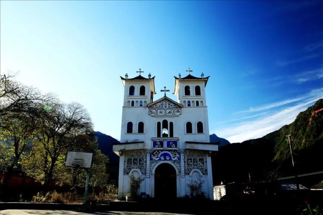 大山深處的哥特式建筑風格,堪稱怒江大峽谷中最漂亮的天主教堂。由法國傳教士任安守耗時10年于1935年建成,“文革”期間被毀,1996年在原址重建,規(guī)模較之原來的小些,即使略顯簡陋,但也令人驚嘆,深山之中崇拜自然的民族也會有不同的信仰。