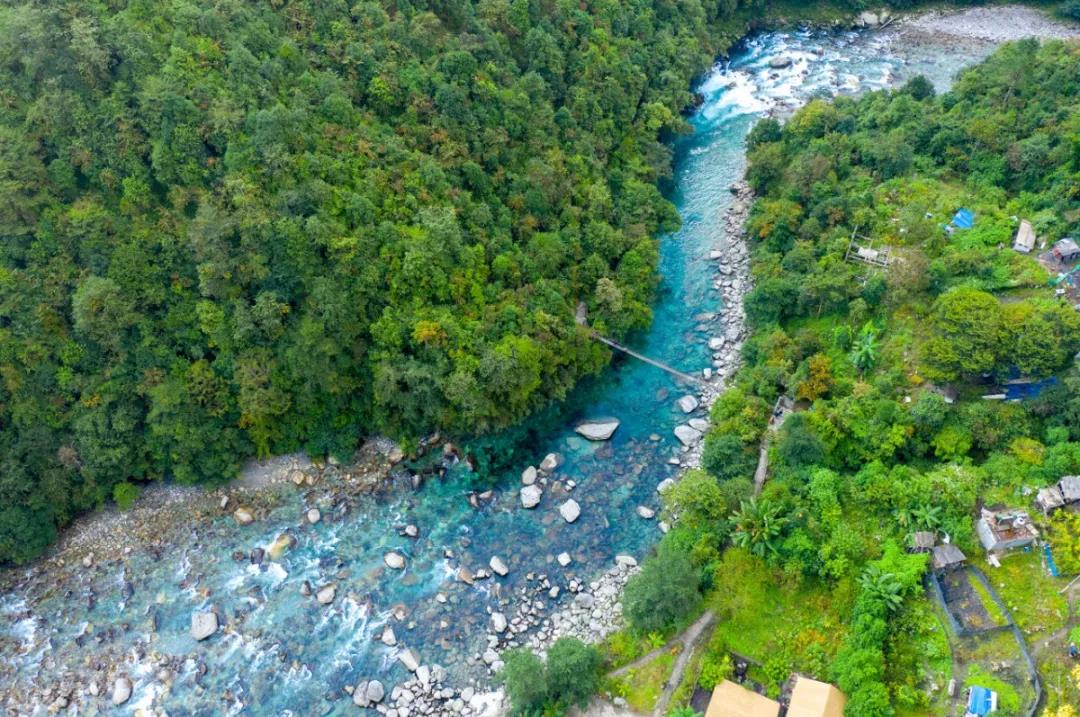 這里游客罕至,人煙稀少,如翡翠般清澈碧綠的獨龍江流淌在蒼翠的崇山峻嶺間,是一處難得的世外桃源。