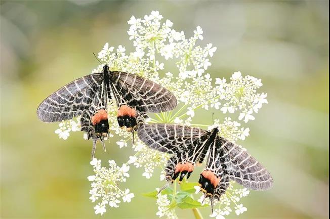 多尾鳳蝶在花間翩翩起舞