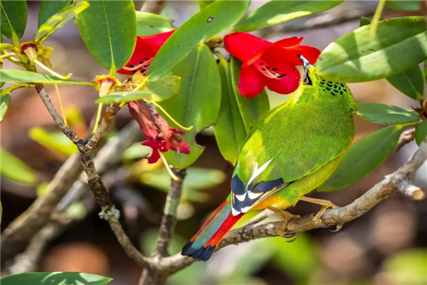 火尾綠鹛在紅花中穿梭