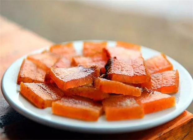 琵琶肉是一種用傳統(tǒng)腌制方法制作而成的肉品。具體方法是豬屠宰后將其內(nèi)臟和骨頭取出,保留完整軀體。待其稍涼后,撒入花椒面、草果面、食鹽等佐料及白酒,輕輕搓揉后,將其開口縫合,在縫線部涂敷上水或香油調(diào)好的灶灰,并用木塞或玉米芯把豬鼻塞嚴(yán),以防蟲蛀。然后用石板或木板壓上晾干,干后形似琵琶,故名“琵琶肉”。琵琶肉的制作歷史悠久,保存時(shí)間長,若不切開,三、四年不變味。琵琶肉肉色透明,色鮮味香,風(fēng)味獨(dú)特。