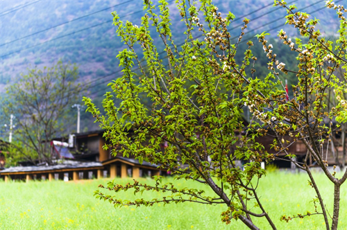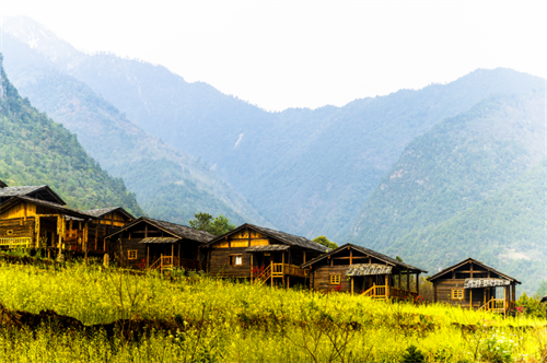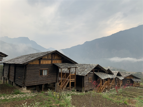 無非是一些低矮的木頭房子,遠遠看過去,一排排,一座座,散布在半山腰,在山腳,在草壩上,卻錯落有致,跟山勢,跟流水,跟野花,融于山水,融于自然,一起構成一幅幅優(yōu)美的畫卷。