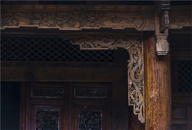 門上鏤刻動物、植物、福壽等圖案
