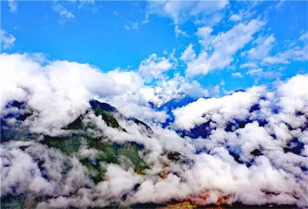 怒江有著顯著的垂直立體氣候,隨著海拔的上升,景觀從峽谷最低處艷陽高照下的碧藍(lán)江水,到山間色彩斑斕的原始森林,再到更高一層的云海日出,直至頂端白雪覆蓋的圣潔雪山。