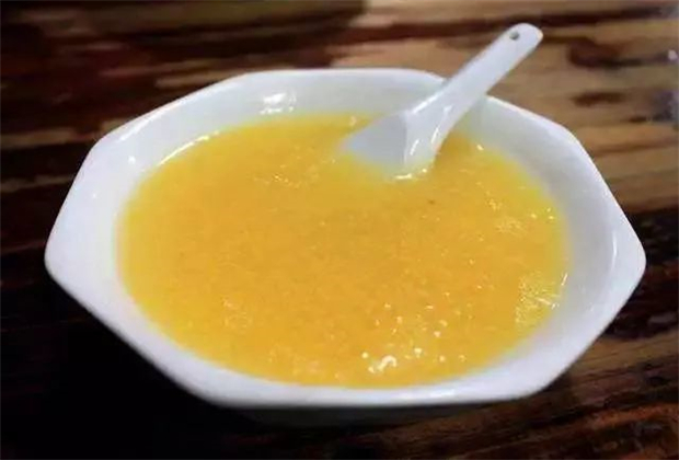包谷砂稀飯,是云南省怒江傈僳族自治州的特色美食,是怒族的主飯食之一。首先把曬干的包谷放到舂具里,加少量水舂去皮,再舂成砂,分別篩出大、中、小粒三種不同的包谷砂,中粒和小粒包谷砂一般用來煮干飯,選大粒包谷砂來煮稀飯,煮熟后放上蔬菜,備些豆豉或辣子,吃起來柔順細(xì)膩,味美香甜,開胃又解渴。