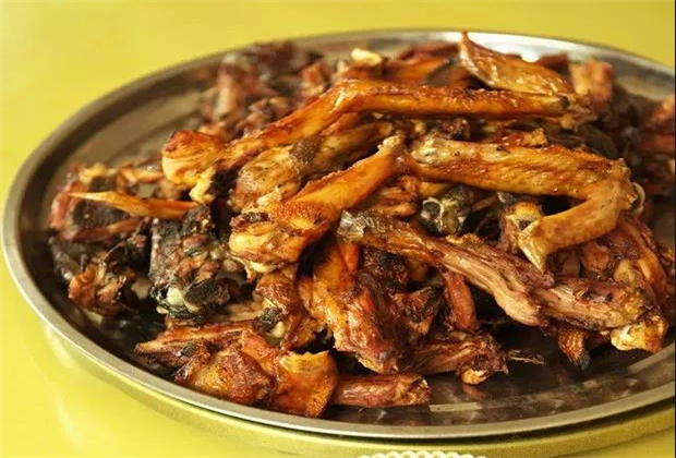 火燒雞選用的是當(dāng)?shù)胤硼B(yǎng)的走地雞,走地雞肉質(zhì)緊實,拔毛清洗干凈后,取出內(nèi)臟用鹽稍加腌制,放在炭火上烤,烤好的雞肉外焦里嫩,再配上糊辣子,讓人垂涎欲滴。