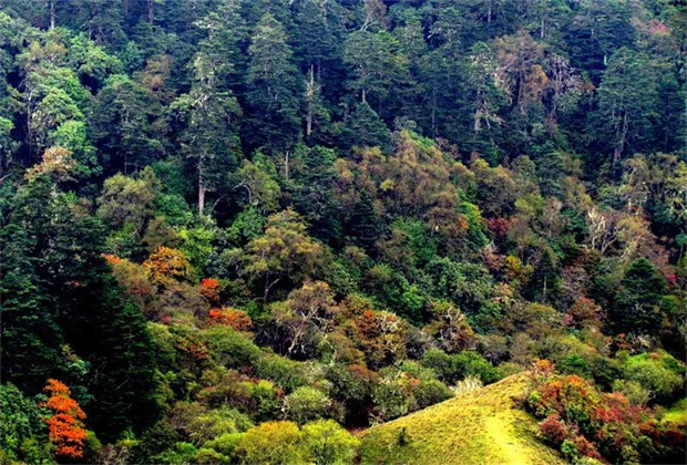 富和山景區(qū)位于怒江蘭坪啦井鎮(zhèn),現(xiàn)在還是一塊天然的處女地,純粹自然,未被塵世所干擾。走進萬籟俱寂的原始森林,抬眼便讓人目眩神暈,筆直生長的古木遮天蔽日、苔蘚斑駁。腳下灌木叢生,綠意盎然,四周寂靜無聲,只余風(fēng)聲、水聲、鳥鳴聲,宛如一個藏在世界之外的“小世界”。