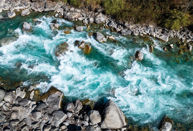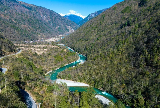 (碧綠獨(dú)龍江似一條玉帶蜿蜒山間。人民網(wǎng) 蔡樹菁攝)