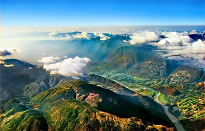 空中俯瞰怒江大峽谷,如夢(mèng)如幻。這是世界上最神秘的的峽谷之一。這里有壯觀的大峽谷,激越的大江,潔白的雪山,