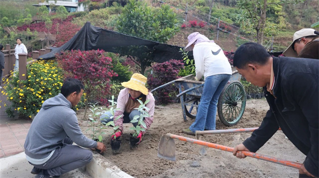 精準掌握小??Х确N植管理的技巧。“以前沒有太多技術,隨便種種,今天學到了挖坑、施肥、澆水的要