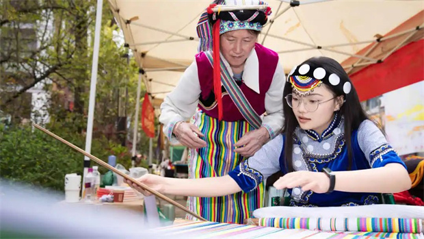 當(dāng)?shù)靥厣〕砸蚕阄哆h(yuǎn)飄,勾人饞蟲。但是怒族非遺展區(qū)卻是我們停留最久的地方,因?yàn)榕逑易訌椬嗟臉非鍝P(yáng)動(dòng)聽