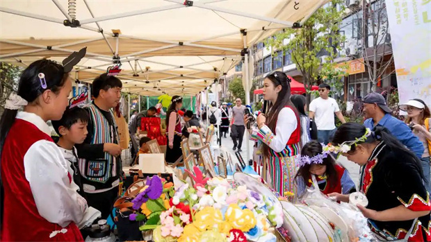 下午,我們逛到了民族特色集市,以怒族、藏族、傈僳族為主的民族特色衣服首飾擺滿集市,許多諸如石板粑粑之類的
