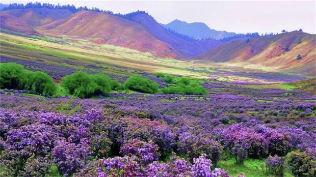 的壯麗奇觀——石峰如柱如塔,姑娘山巍峨聳立。夏季來臨之時,大羊場高山草甸上杜鵑花海從山頂傾瀉而下,將連綿
