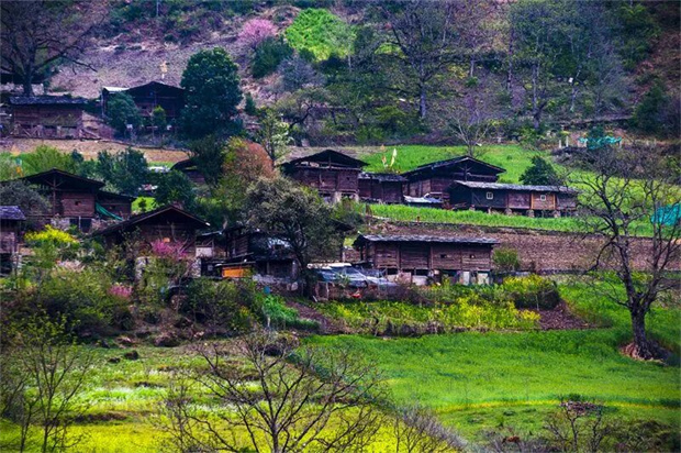 窄窄的古路前行,走進(jìn)炊煙裊裊、木屋錯(cuò)落的小村。此處時(shí)間仿佛凝滯,遠(yuǎn)山疊翠,江水澄碧,宛如桃源。